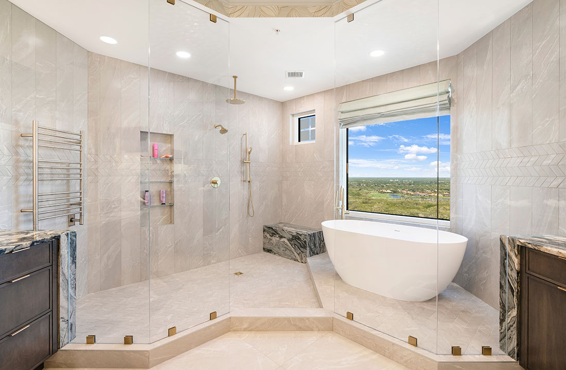 A Luxe Primary Bathroom and Laundry Room Remodel in Bonita Bay, FL